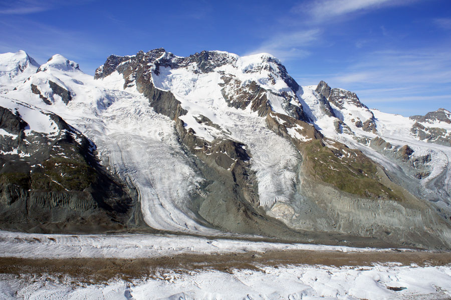 画面下の氷河は Gornergletscher