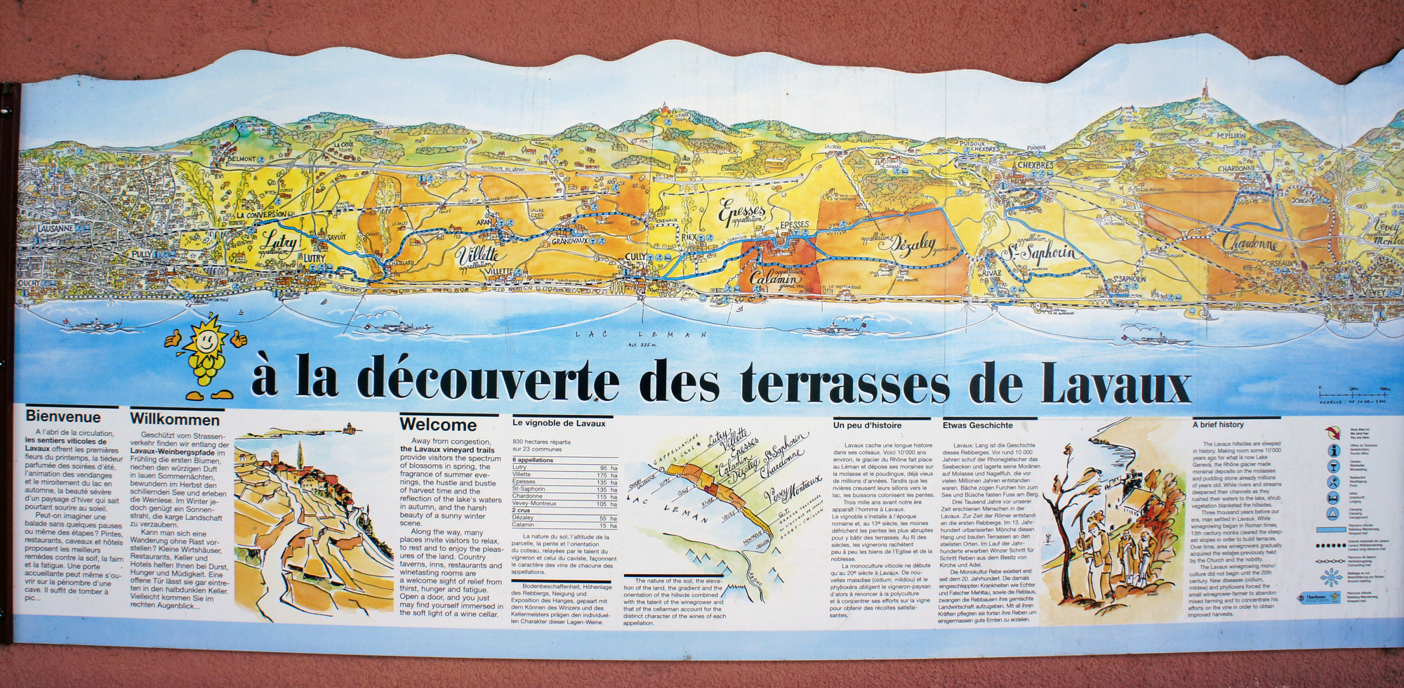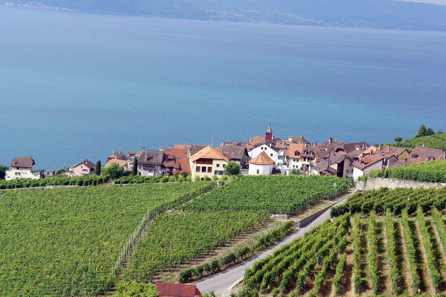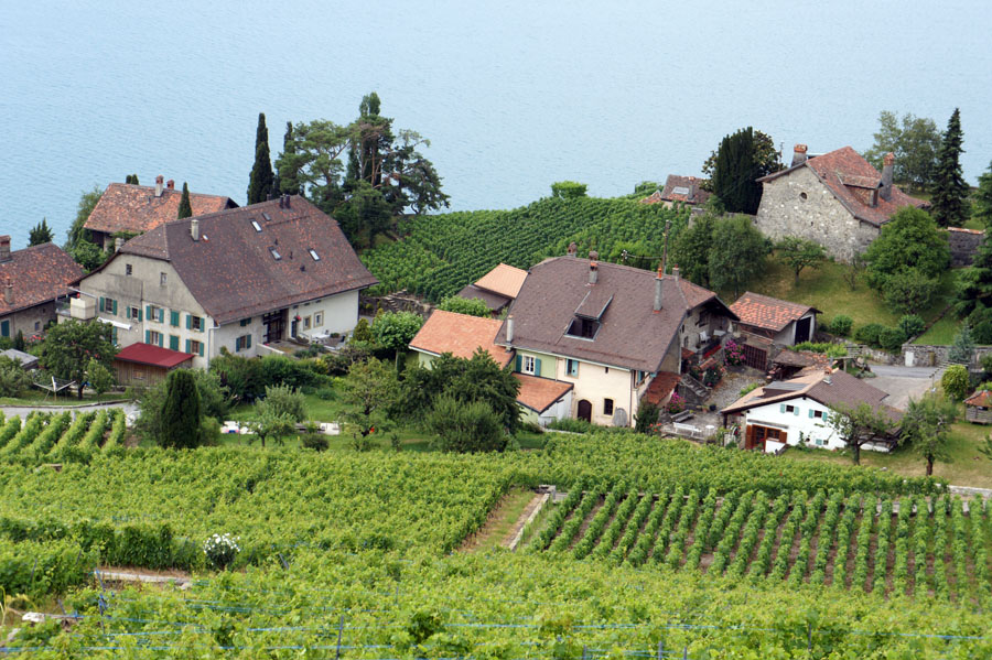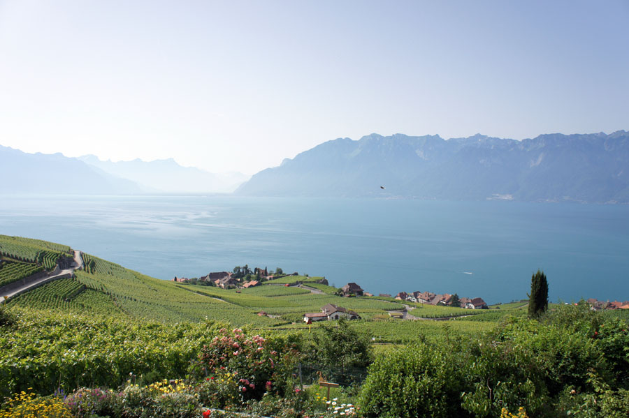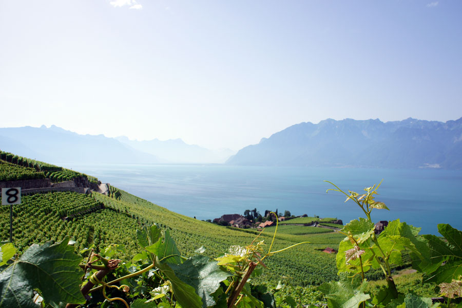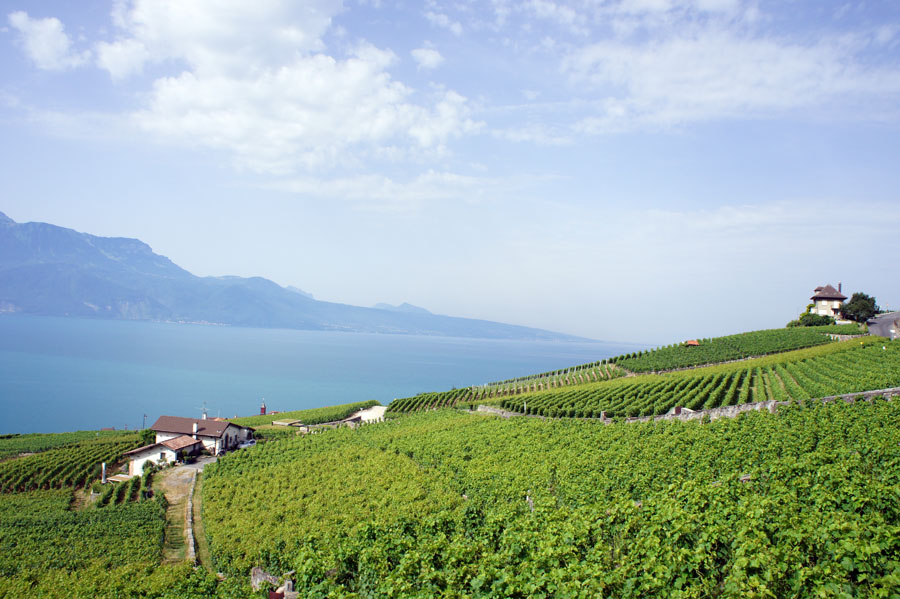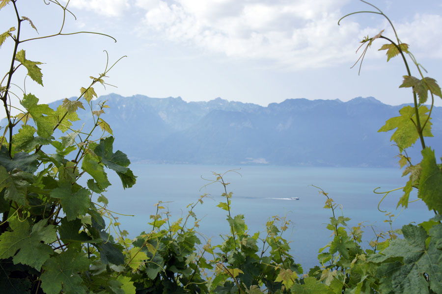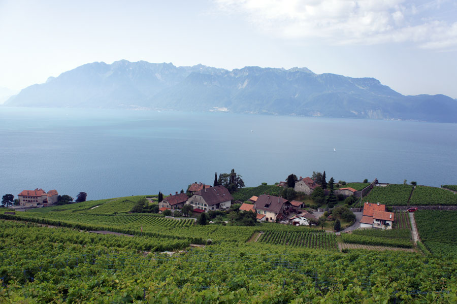 LAVAUX 07/09 レマン湖の南はフランスで 湖面から山が立ち上がっているが 北側のスイスは なだらかな南面の丘で 湖面の照り返しにも恵まれ 上質な白ワインを生産している 2007年に世界遺産に登録されている