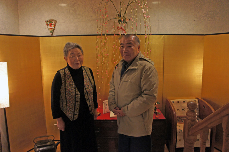 玄関のお飾りの前で