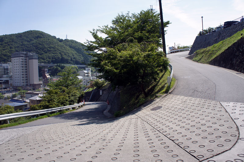花山で 正面の陸橋を渡り 斜行エレベータで ズルをする