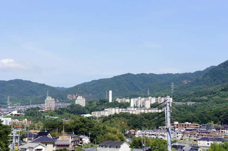 有馬街道より高く 山田川の河岸段丘に在る