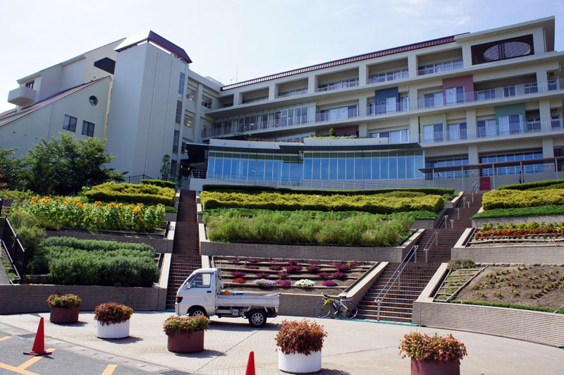 右上がりの坂が病院へ続く