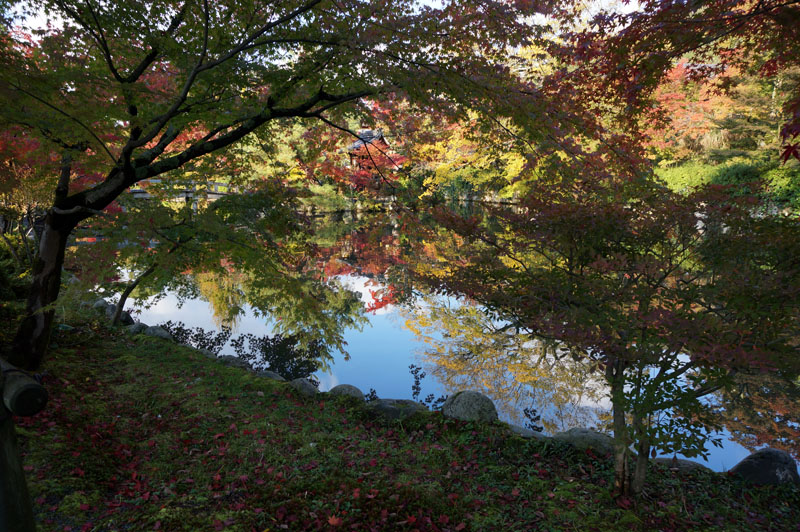 放生池の周りの紅葉は 見応えがあった