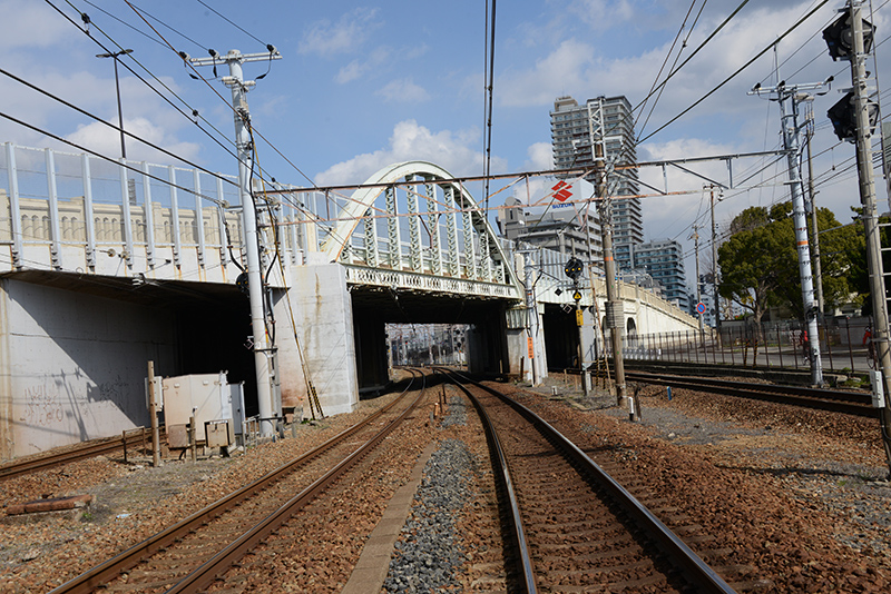 市電は陸橋の上を走っていた