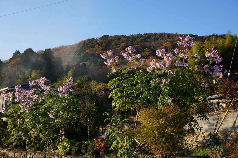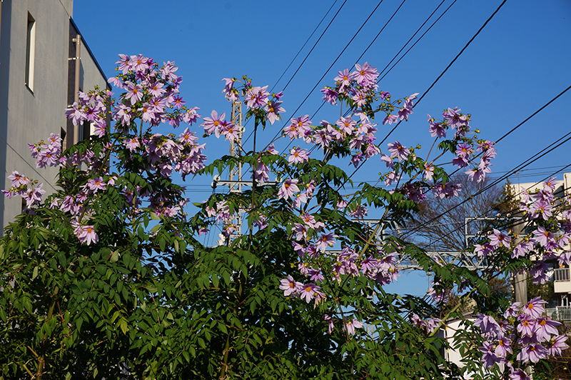 木立性のダリアが 沢山花をつけている