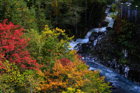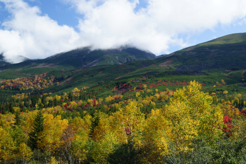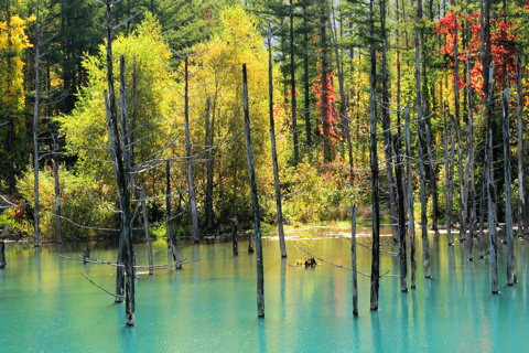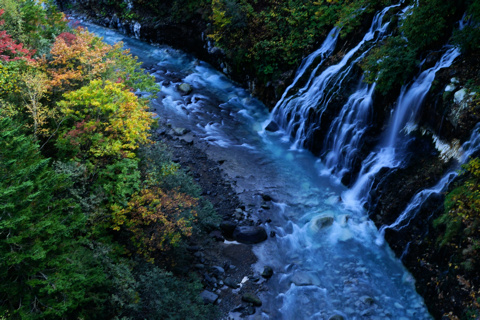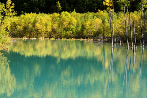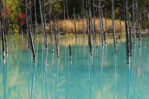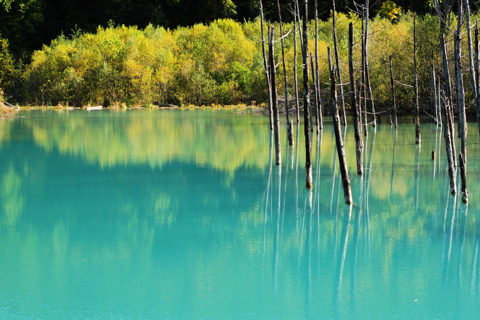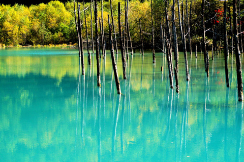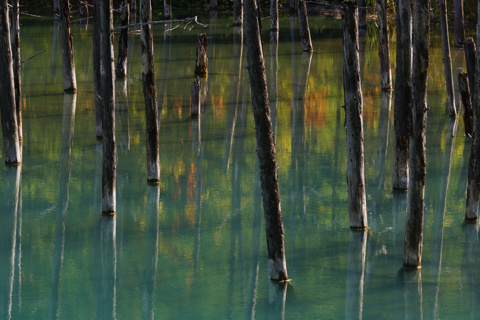 北 海 道 5 19/10/08 第5日 旭川から 美瑛白金の青い池、白髭の滝、十勝望岳台を撮影。 好天に恵まれ 帰りの飛行機の時間を気にしながらも撮影できた。 飛行場のレンタカーの返却を 3時にしてくれと言われており 美瑛で11時15分にカーナビを入れると 3時半着と出たので昼食抜きで戻る。 幸い高速道路も空いており 100km/hで 2時半に到着できたので 飛行場で昼食をし 旅は終わりでした。