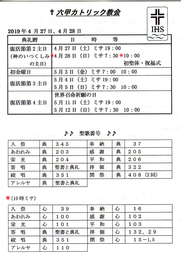 六甲教会での初ミサ ・・・