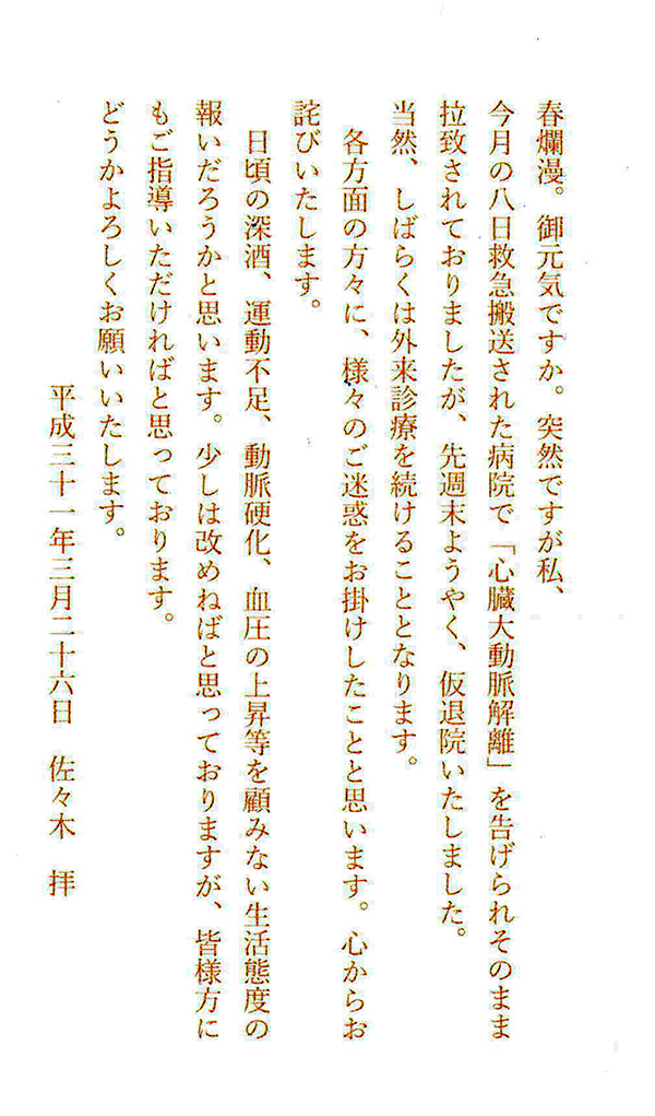 葉書を貰って驚いた 無事生還 何よりです