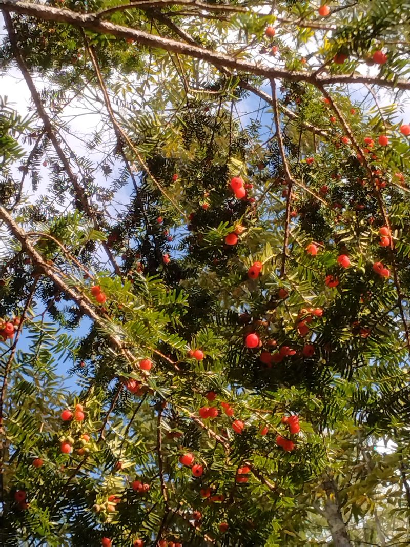 皆さんお元気ですか? 庭のイチイの木には赤い実が沢山なってます。